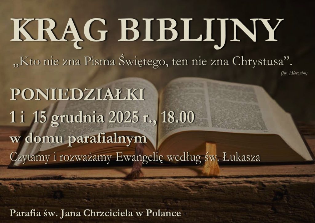 - Zapraszam wszystkich chętnych na Krąg Biblijny – w poniedziałek, 1 grudnia, o godz. 18.00 do domu parafialnego.
