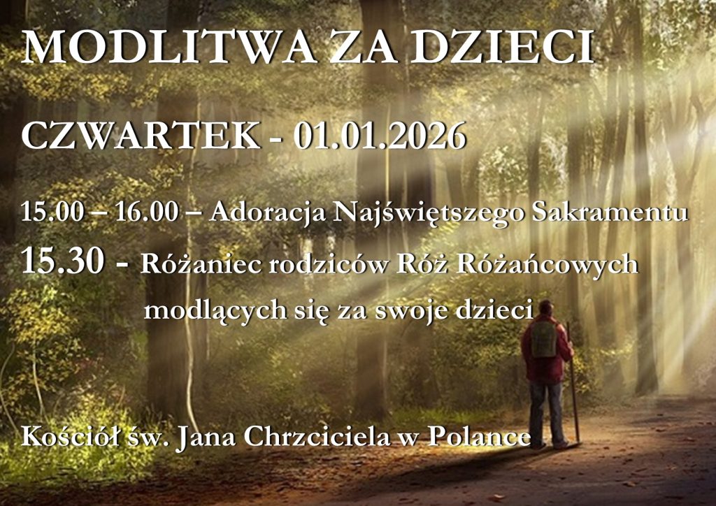 - W czwartek, 1 stycznia adoracja Najświętszego Sakramentu będzie od 15.00 do 16.00. O 15.30 będzie Różaniec rodziców modlących się za swoje dzieci.