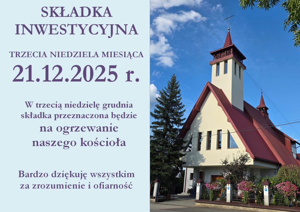 - Dzisiaj jest trzecia niedziela miesiąca. Składka w całości przeznaczona będzie na ogrzewanie naszego kościoła.